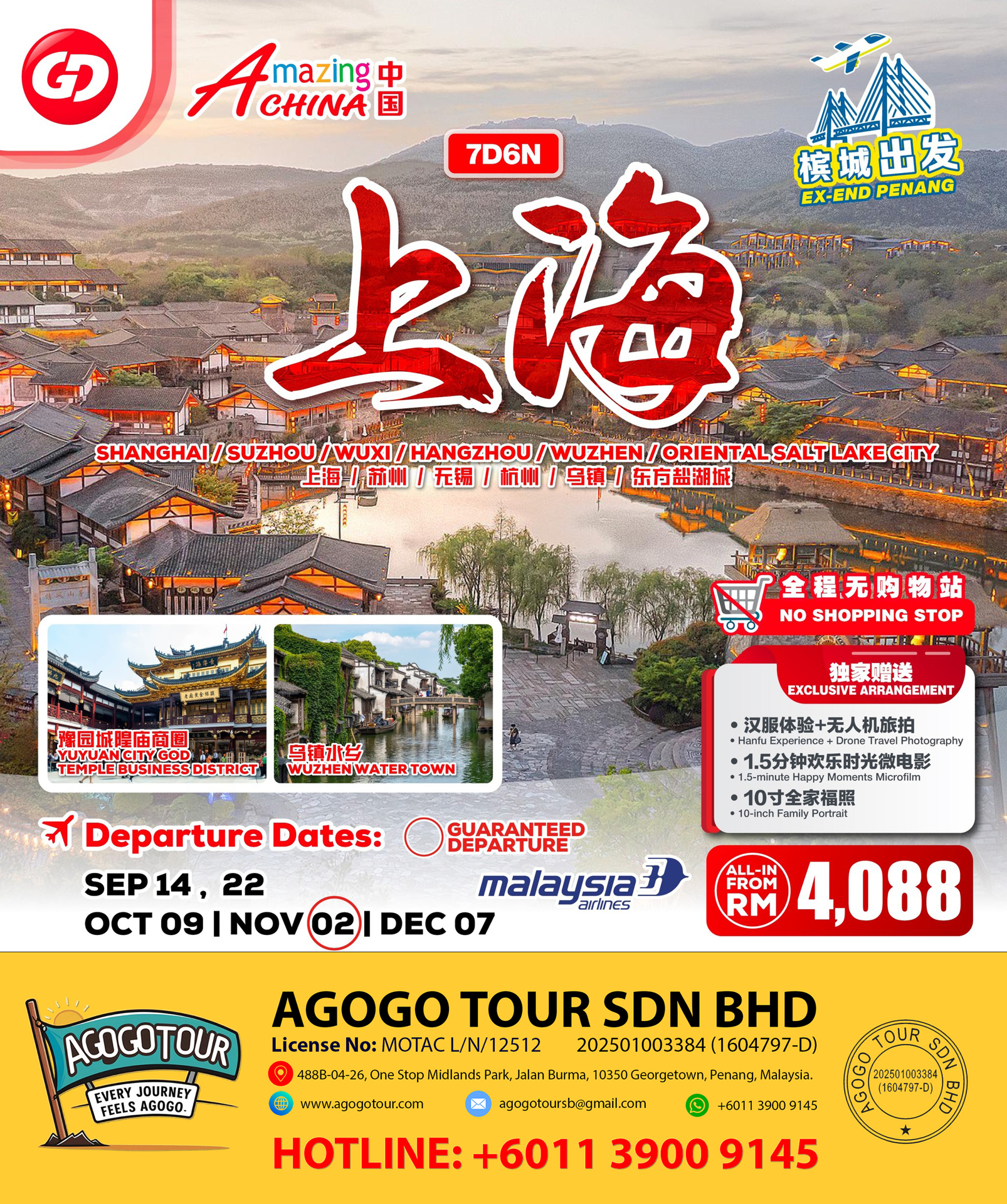 Explore the vibrant city of Shanghai and the enchanting beauty of nearby destinations like Suzhou, Wuxi, Hangzhou, and the ancient water town of Wuzhen. This 7-day, 6-night tour offers a perfect blend of modernity and tradition, ensuring an unforgettable experience.